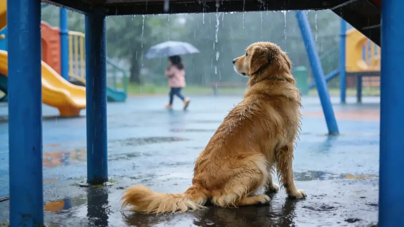 On rainy days, everyone thinks Luna won’t come, but she always shows up soaking wet, still squatting under the eaves of the playground, waiting for the children to run over with their umbrellas, her tail wagging more happily than ever before.